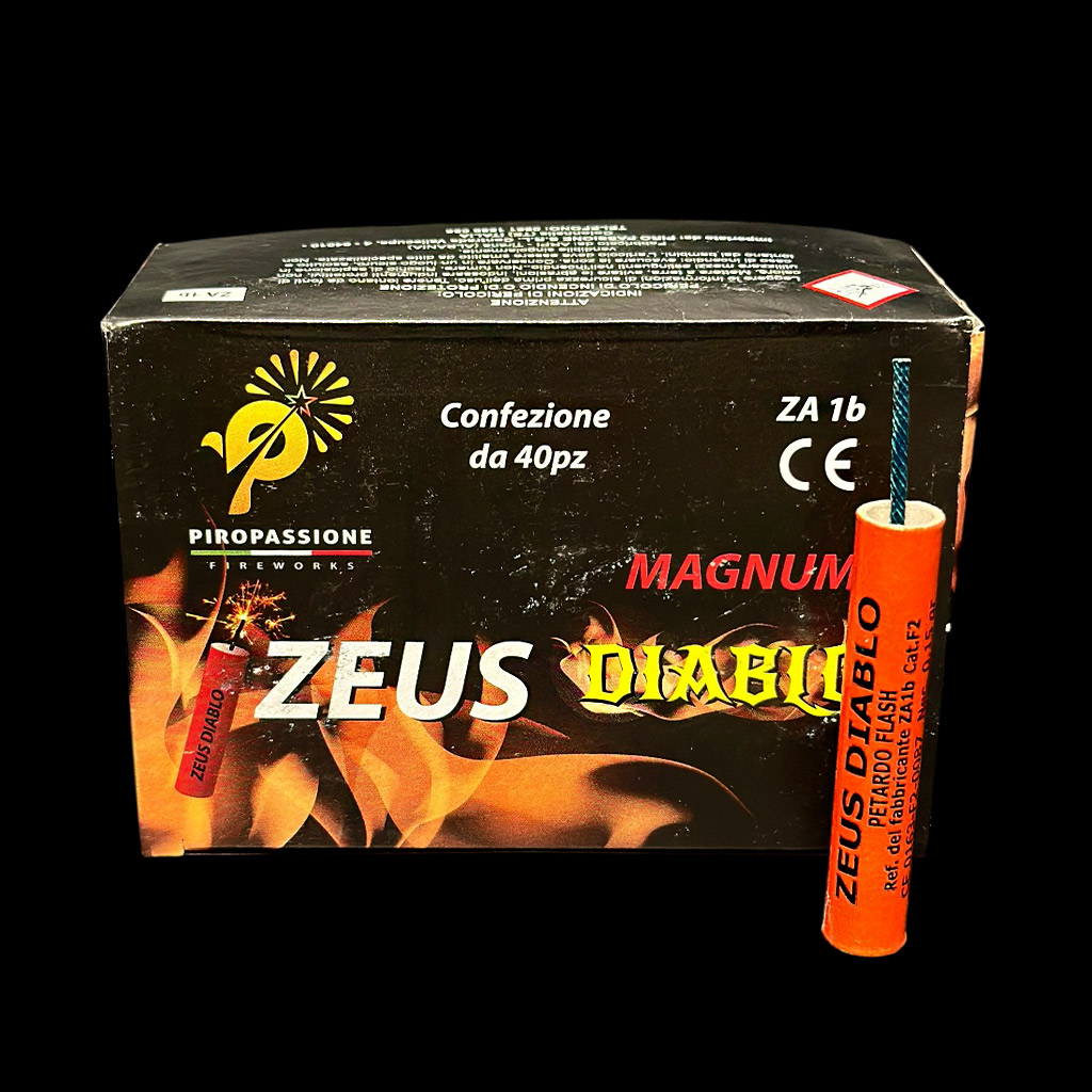 Petardy MAGNUM ZEUS DIABLO od výrobce Arpi (Albánie) patří do kategorie F2 a obsahují 0,15 g zábleskové slože. Oproti modelu SUPERZEUS se liší tenčí dutinkou, díky čemuž působí subtilněji, ale výkon zůstává v rámci dané kategorie stejný.