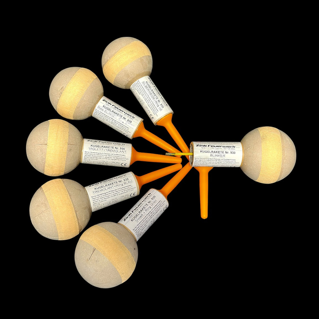 Profesionální set 6 raket od německé společnosti ZINK-Feuerwerk s pestrou škálou efektů včetně blikajících hvězd, fialových efektů se zelenými prstenci, tremolantů s modrými prstenci, červených blikačů se zelenými prstenci a stříbrných vrb s červenými prstenci. Rakety se prodávají bez stabilizačního kolíku, doporučená délka kolíku je 130 cm pro optimální stabilitu a výkon.
